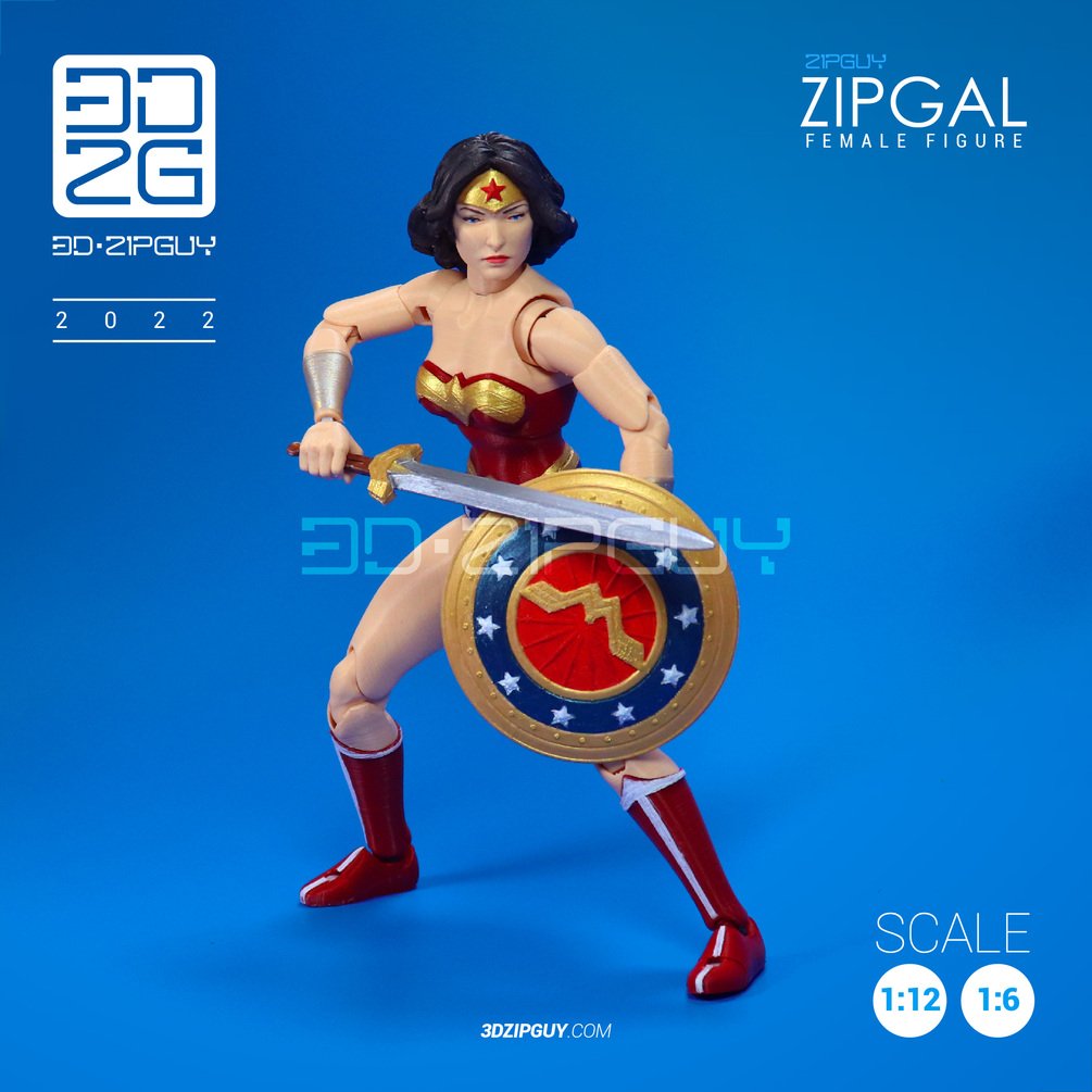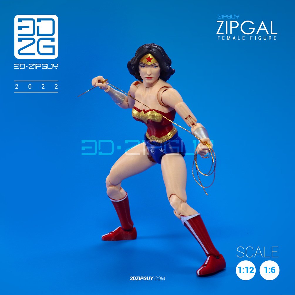 ZIPGAL is a highly articulated FEMALE 3D printed action figure that is assembled using zip ties.